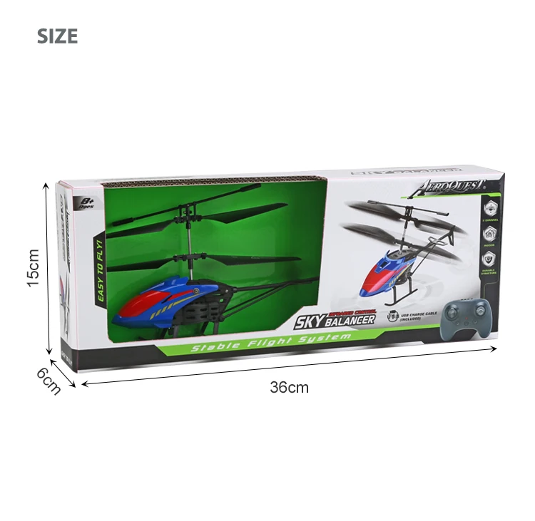 Aero Quest - 2 Channel RC Flying Helicopter Remote Control Helicopter for Kids Easy to Use Radio Control Toy W/USB Charger & LED Lights