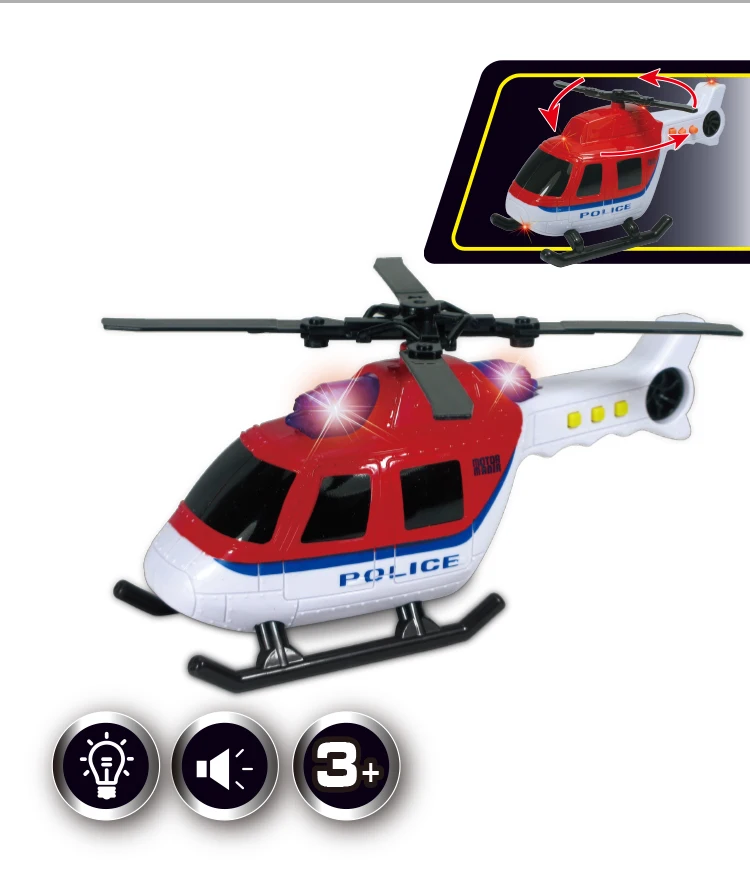 Fast Gearz - Toy Police Helicopter with Blades Freewheel Helicopter with Light & Sound City Service Toy Helicopter for Children