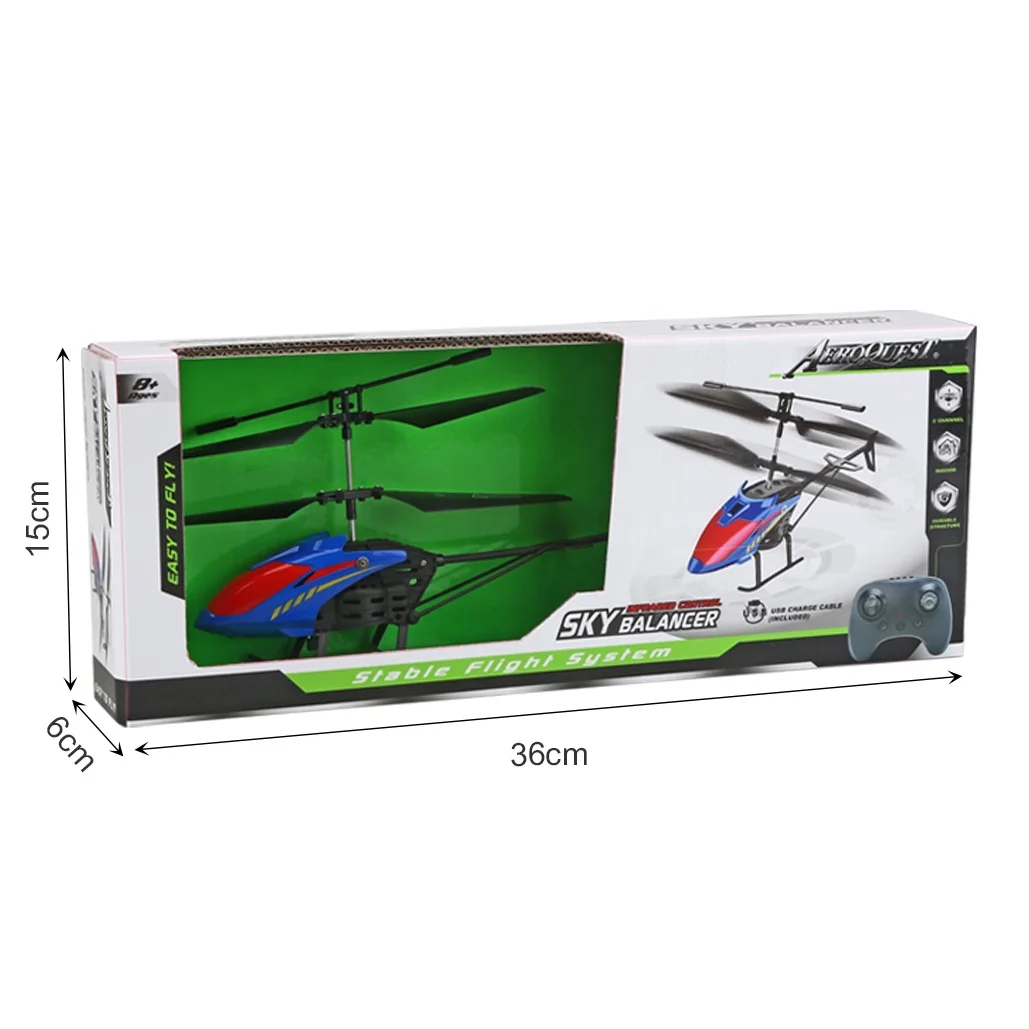 Aero Quest - 2 Channel RC Flying Helicopter Remote Control Helicopter for Kids Easy to Use Radio Control Toy W/USB Charger & LED Lights