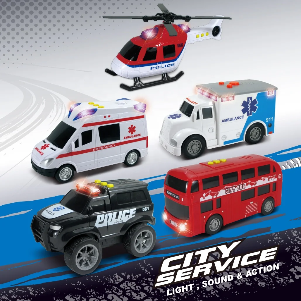 City Series - Kids Toy Police Helicopter with Blades Freewheel Helicopter with Light & Sound City Service Toy Helicopter for Children