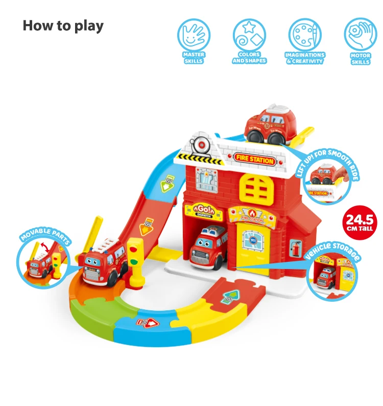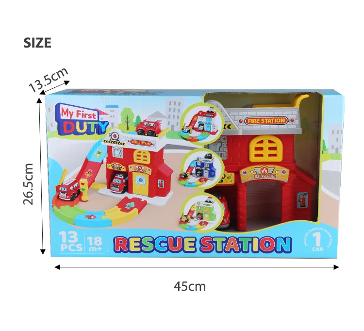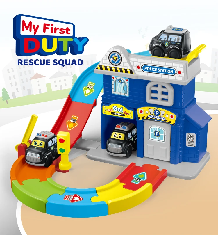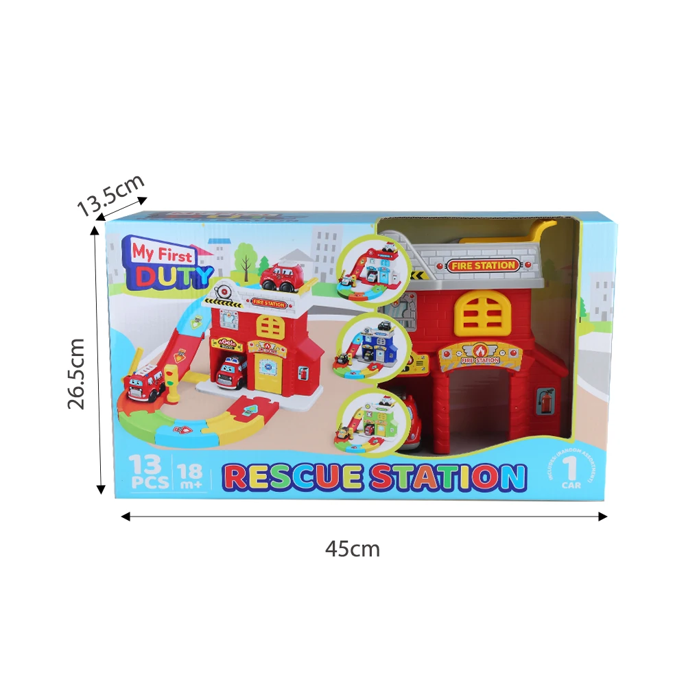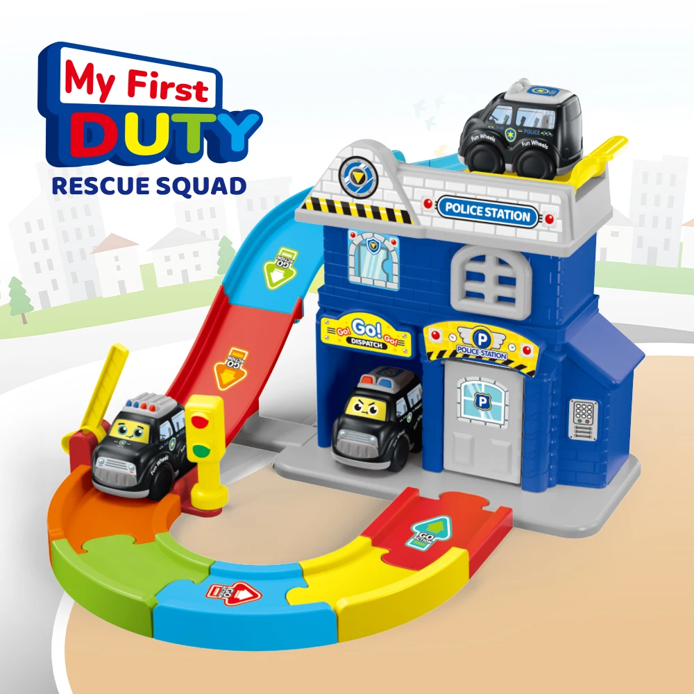 Estación de Juguete My Duty Rescue Squad con Pista de Coche Ciudadano de Rueda Libre, Efectos de Luz y Sonido para Juego de Rol de Emergencia Realista