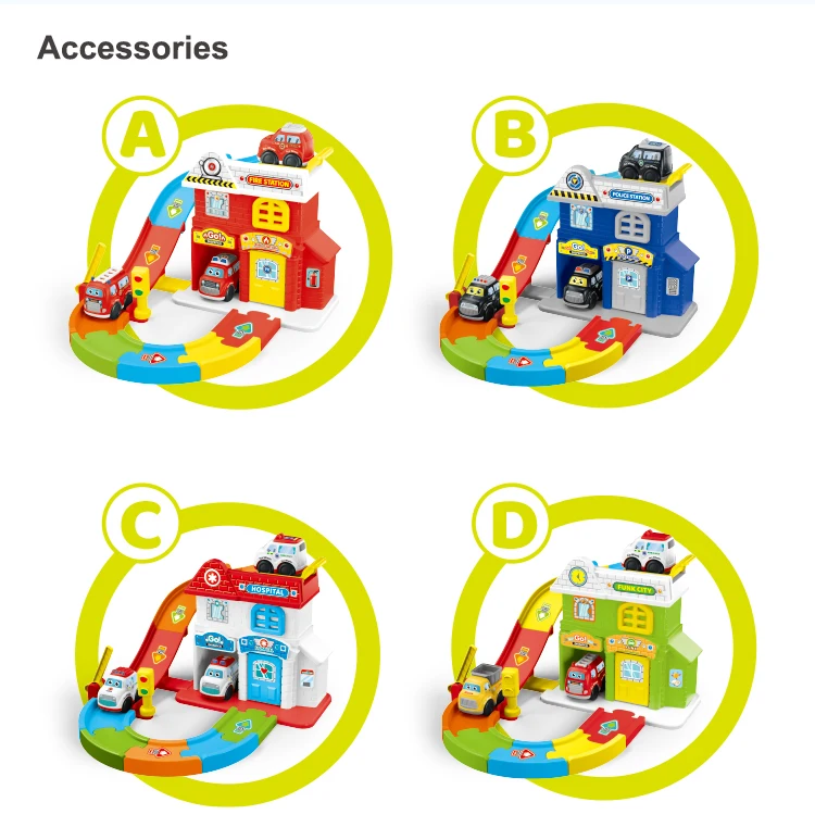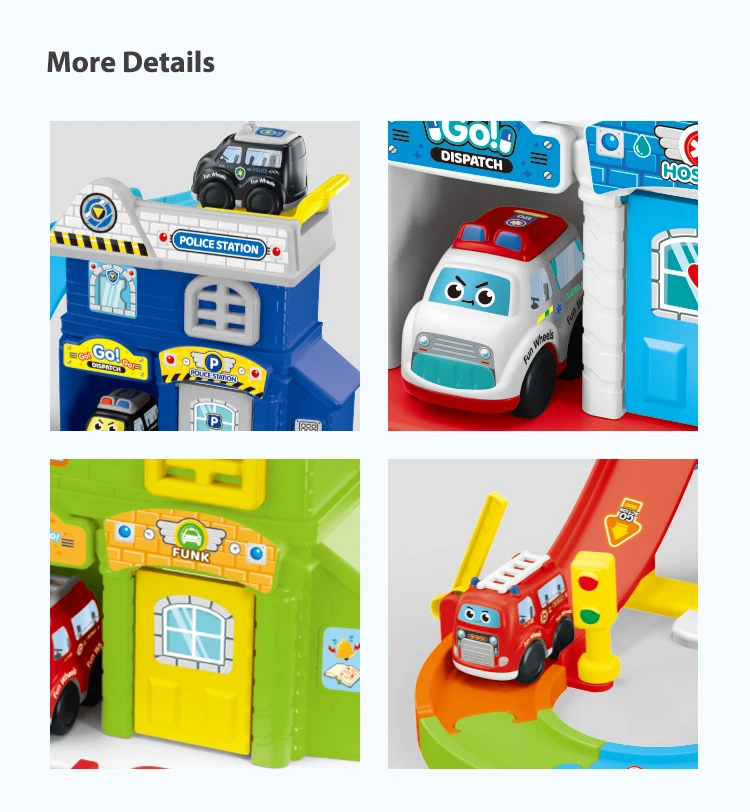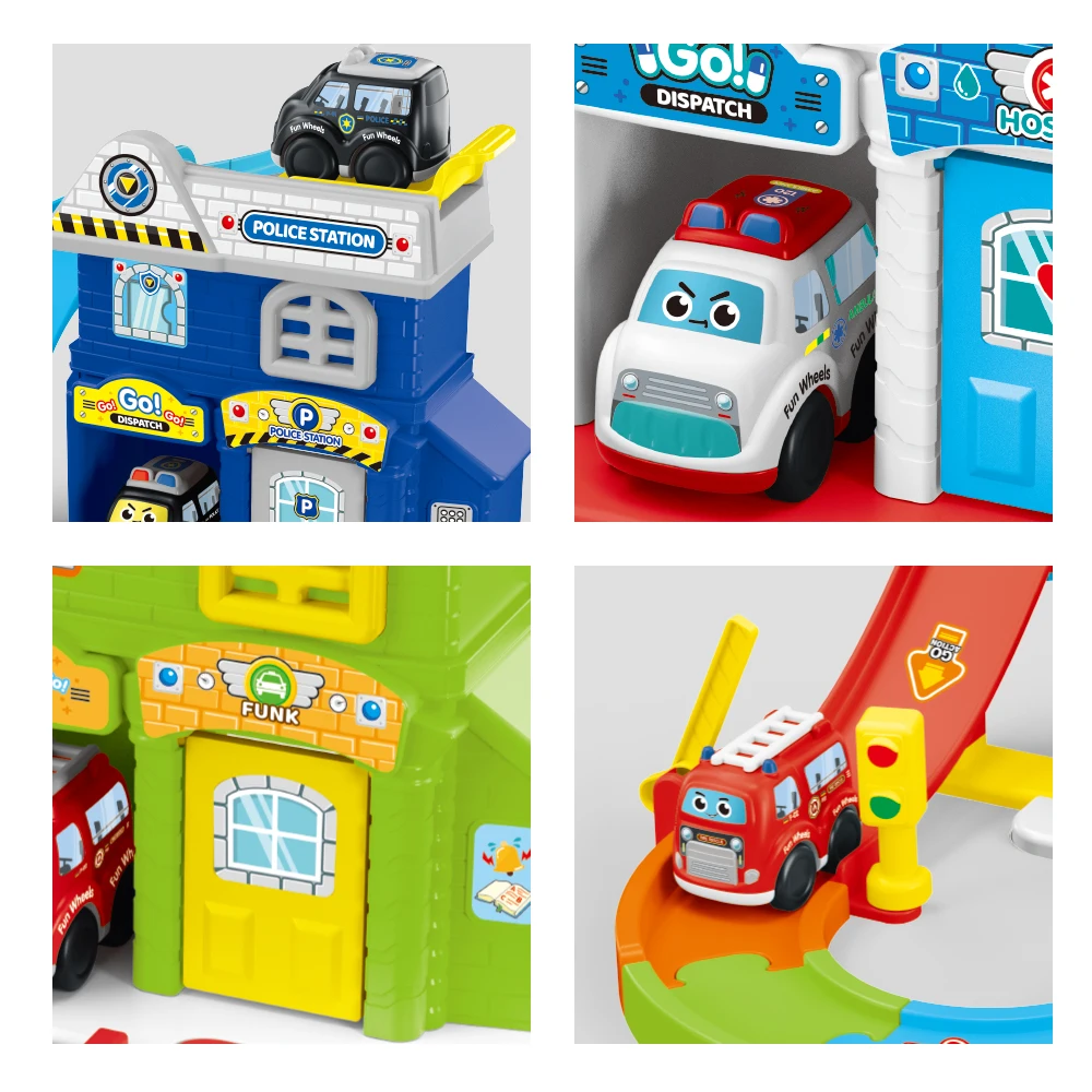 Estación de Rescate de Mi Escuadrón de Servicio con Set de Pista de Coche Urbano de Inercia, Efectos de Luz y Sonido, Juego de Imitación Realista de Emergencias