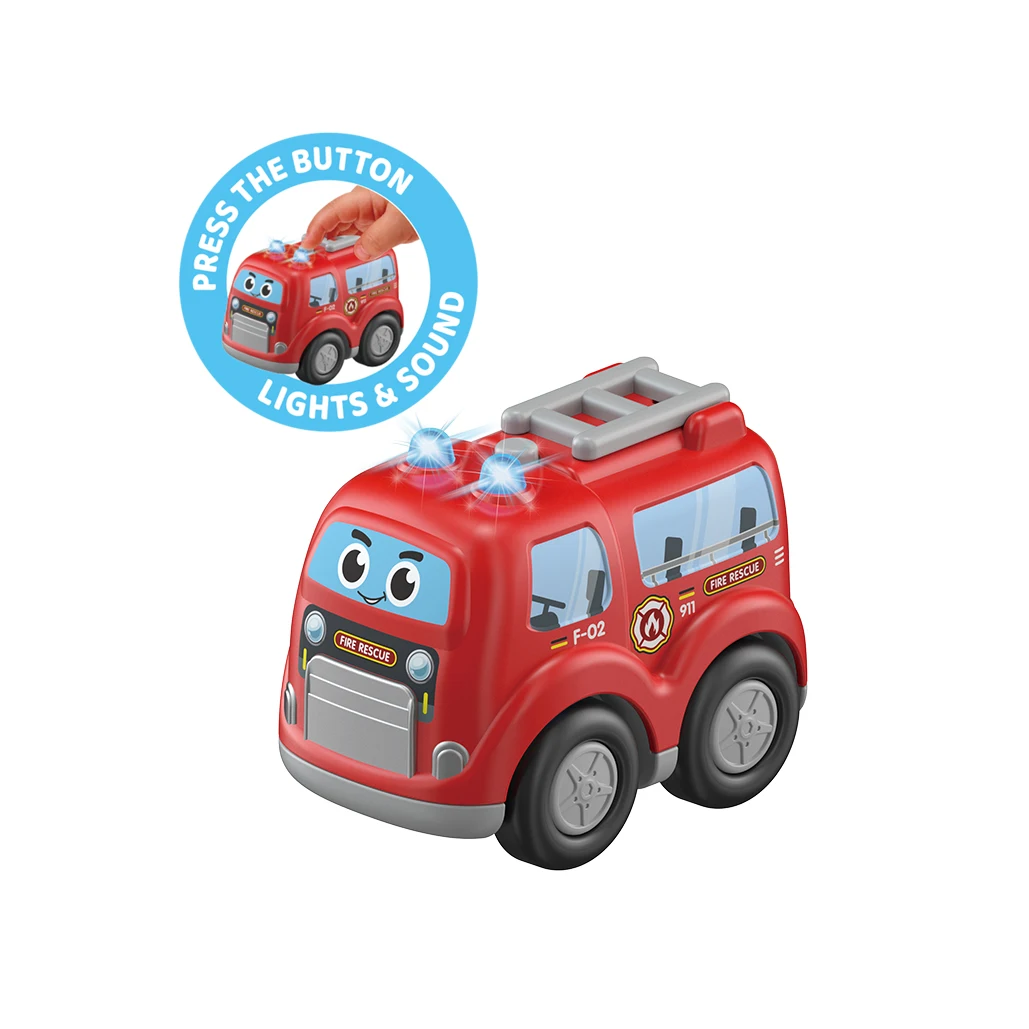 Presenta a tu pequeño héroe un emocionante juego de rescate con el Mini coche con rueda libre My First Duty Rescue Squad. Este vehículo compacto incluye divertidos efectos de luz y sonido, como una sirena realista, diseñados para entretener a bebés y niños pequeños. Con su sencilla acción de empujar y rodar, es fácil de mover y perseguir en cualquier lugar, ideal para pequeñas manos. Duradero, seguro y perfecto para el juego imaginativo temprano, fomenta las habilidades motoras y el juego simbólico de primeros respondedores, convirtiéndolo en un juguete ideal como primer vehículo para diversión y aprendizaje en movimiento.