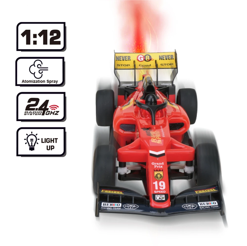 Fast Gearz - 1:12 Formula RC Car 2.4G Light Speed Racer with Engine Sound and Spray Effect Remote Control Toy Vecihle for Kids Adults