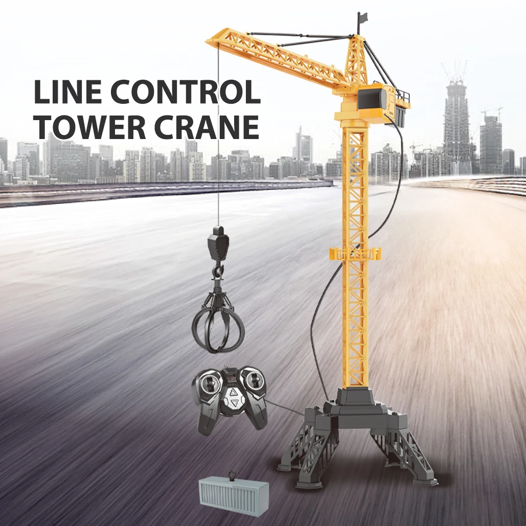 Line Control Tower Crane Toy Remote Control Engineering Construction Builder Model Realistic Lift Action Building Play for Kids