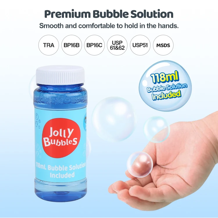 Créez un monde magique de bulles avec le Jolly Bubble ! Ce jouet en forme de poisson-globe adorable souffle automatiquement des jets de bulles colorées et sûres, idéales pour des heures interminables de jeu en plein air. Il suffit de le remplir avec la solution à bulles (incluse), de l'allumer et d'admirer le flot de bulles. C'est le divertissement parfait, facile à utiliser, pour jouer dans le jardin, lors d'anniversaires ou de toute aventure par une journée ensoleillée. Conçu pour les enfants, il apporte un jeu de bulles joyeux et sans tracas à n'importe quelle célébration !