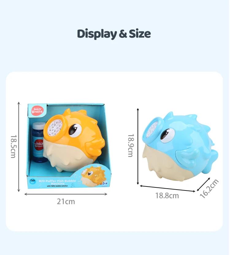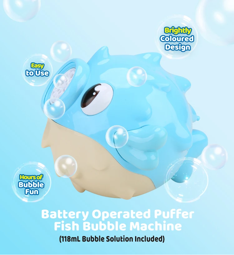 Jolly Bubble - Machine à bulles automatique en forme de poisson-globe, jouet coloré et sûr, créeur de bulles pour enfants, idéal pour les jardins, anniversaires, fêtes en plein air et jeux amusants