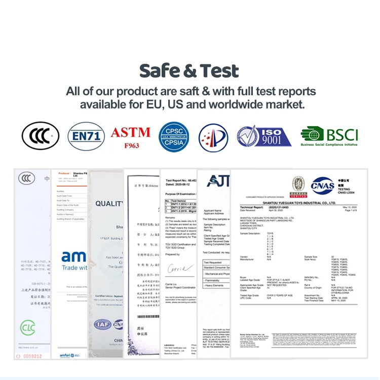 EN71, EN62115, EMC, EN60825, phtalate, cadmium, ASTM, HR4040, ISO8124, ROHS |