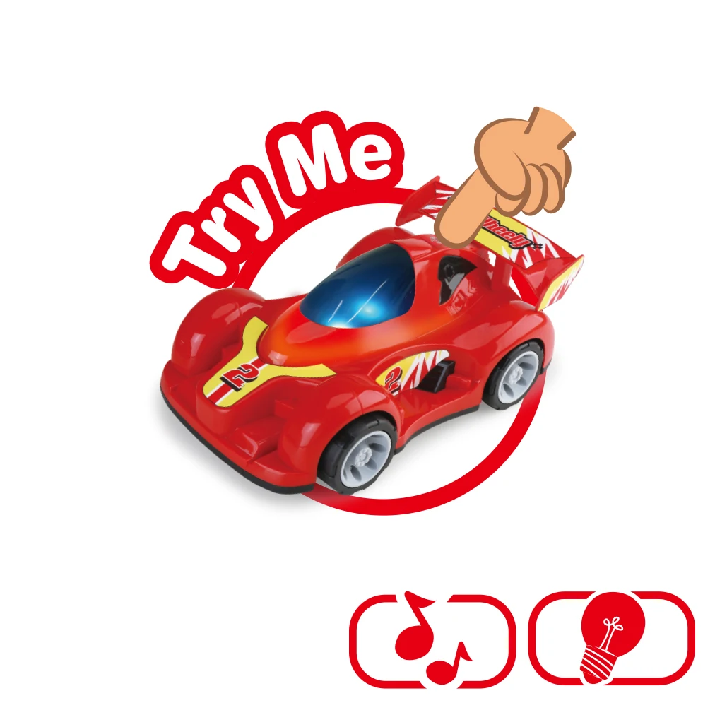 Нажми и поехали с подсветкой и звуком — просто слегка толкните игрушку, чтобы запустить её в движение, и автомобиль ответит забавными световыми эффектами и весёлыми звуковыми сигналами; батарейки не требуются.